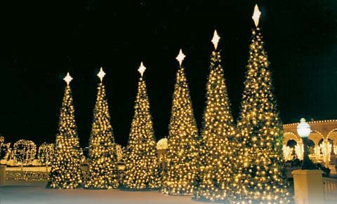Dekra-Lite 16′ x 5′ 348 Watt Pop-up Garland Tree with Star 348 Watts 350 bulbs per tree 220 pounds Dimensions: 16′ X 5′ For Outside use only C9 Incandescent Lighting Tree of Light comes with 22″ glowing star tree topper