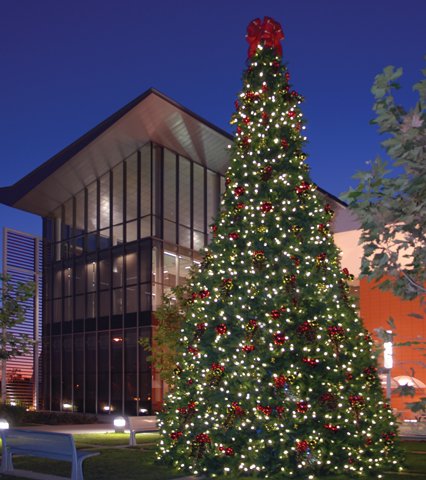 Dekra-Lite 2769 Watt Giant 28′ Sequoia Tree Pre-Lit with LED Mini Lights Size: 28′ Base: 13.5′ 27,230 Tips Weight: 1615 Pounds 2826 LED C7 Lights 2769 Watts Additional Information: Our Sequoia trees are structured of corrosion resistant metal cone frames that are stackable for compact storage. The lush, dark green, weather resistant foliage is fire-resistant, and UV treated for exterior use with UV Inhibitors on garland and ornaments. Our garland is backed by a 10-year warranty, for added peace of mind. Trees frames are color coded for ease of assembly, and use universal branch and bolt sizes for interchangeable parts. The Sequoia’s branches attach easily to frame. Each tree’s height is easily adjusted, simply add or detract 2-foot sections to attain desired height. Sequoia Garland Trees are available in sizes ranging from 14′-60′ and are pre-lit with either LED Mini Lights or LED C-7 bulbs.
