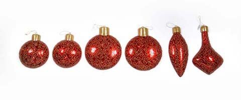 Dekra-Lite Six-Piece Half Round Ornament Package Size(s): (2) 9″, (1) 11.5″, (3) 13″ Gold Finish Additional Information: Add designer continuity to your trees and wreaths with our large themed ornaments.   The Half Round Ornaments are commercial quality, made for interior or exterior use.  Red or Gold. Sold in cases of 6.