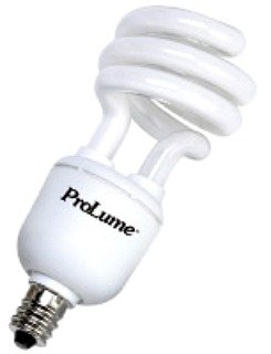 // Halco Prolume 13 Watt Mini Twist Compact Fluorescent Spiral T2 120V Bulb • Equivalent To 60 Watt Incandescent Bulb• E-12 Candelabra Screw-in Base • Color Temp 5000k Natural White• Lumens 900• UL Listed For Indoor Use • CRI 82• Rated 120 Volts • Rated Avg. Life 12,000hrs• MOL 4.19in x MOD 1.81in • Sold 10/Case• Specs Energy Efficient • Maximum light distribution achieved through compact design• Save up to 80% in energy costs compared to incandescent lamps• Tri-phosphor coating enhances lumen efficacy and color rendering Technical Data • E12 base, E26 base, GU24 base• Electronic instant start ballast• 120 volt, 60Hz• Minimum starting temperature 5°F• Nickel-plated brass base• End of Life Protection Broad Assortment • 5, 9, 13,18 and 23 watt• 2700, 3500, 4100, 5000K• 5, 9 and 13 watt available in E12 base• 5, 9, 13, 18 and 23 watt available in E26 base• 13, 18 and 23 watt available in GU24 base Long Life • 10,000-12,000 Hours Average Rated Life Benefits • Saves energy• Compact design• Low maintenance• UL approved for use in totally enclosed fixtures up to a max ballast case temperature of 90°C Applications • Table lamps• Ceiling fixtures• Down lighting• Wall sconces