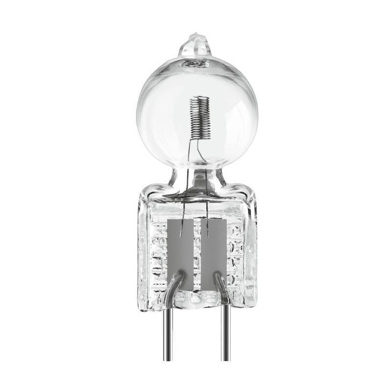 Osram Display Optic 22.8V Single Ended 150 Watt Halogen Xenon medical fiber optic Lamp Only for Use in Approved Enclosed Halogen Fixtures MOL 44mm x DIA 14mm s90 Burn Position Rated Voltage 22.8 Volt Rated Avg. Life 600hrs Initial Lumens 6000 Color Temp 3100K G6.35 Bi-pin Base Country Of Origin Germany Osram Product Code #4008321330598 Additional Information The new XIR lamps from Osram provide more light and greater efficiency in the operating theatre than standard halogen lamps. Their high luminous efficacy is achieved by a special coating on the bulb (IRC = Infra-Red-Coating). This is further enhanced by a xenon gas filling. XIR lamps meet the requirements of operating theatre lighting perfectly. They provide up to 50% more light in operating theatre luminaires, given the same conditions in terms of wattage and lamp life.