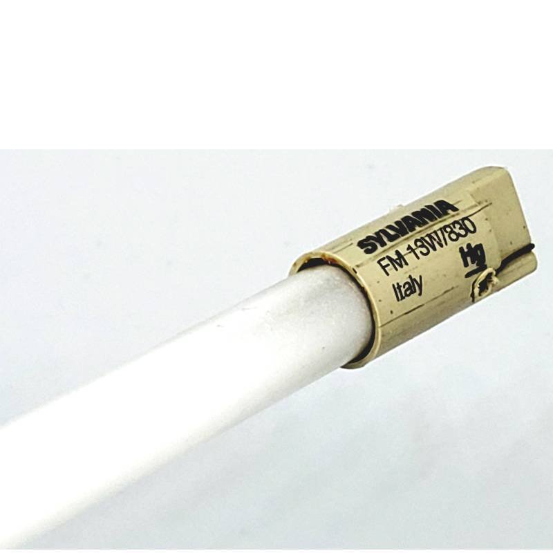 Sylvania Designer 800 Series 13W 3000K Axial Base 20.60in Subminiature T2 Fluorescent Lamp For Undercounter/shelf lighting, backlight for displays CRI 80 Axial Base Color Temp 3000k Initial Lumens 930lm Mean Lumens 837lm MOL 20.60in X Dia 7mm (2/8in) Rated Avg. Hours 10,000hrs Additional Information Sylvania fluorescent Miniature T2 lamps with a 7mm bulb diameter and axial base design allow for new, lightweight, low profile, space-saving fixture designs with high efficiency. Pure tri-phosphor coatings providing 3000K, 3500K or 4100K color temperature with a color rendering index of 80 provide the right color of light and excellent color rendition to blend with incandescent and tungsten halogen sources or backlighted displays. The lumen outputs are higher and the 10,000 hour average rated lamp life is longer than that of T5 preheat lamps of the same wattages and similar lengths Compact, high lumen output design T2 lamps, 7mm diameter High lumen output compared to older style T5 preheat lamps Tri-phosphor coatings for high CRI – 3000K, 3500K, 4100K 90% lumen maintenance Longer life than T5 preheat lamps Four wattages and lengths – 6W/8.6″, 8W/12.6″, 11W/16.6″, 13W/ 20.6″ Axial base – Quick connection, positive retention Low profile • Lightweight, low-profile fixture designs QUICKTRONIC FM ballast operates all wattages Applications Undercounter/shelf lighting Showcase lighting backlight for displays Task lighting Step lights