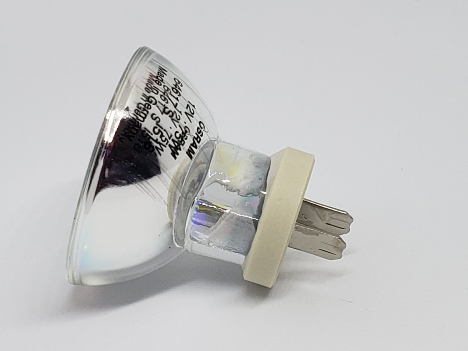 Sylvania NAED 54124/64617 75W 12V G5.3 Bi-Pin 4.8 Base MR11 Photo-optic Reflector MOL 1.4in x DIA 1..38in p90/p15 Burn Position CRI 100 Voltage 12 Volt Rated Avg. Life 25 hrs G5.3-4.8 Bi-pin -side blade Base Used In Darby Superdent 2500 Darby Superdent 2001 Healthco Aristrocrat 1 Gun Henry Schein VCL200 Economy Lares Apollo CP Penn Med 310 Gun Phasealloy Witelite GunAudio/Studio, Medical, Projection ApplicationsOnly for Use in Approved Enclosed Halogen Fixtures