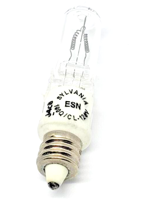 Sylvania Lighting NAED 58761 Super-Q 100 Watt ESN 120V E-11 Base Clear Tungsten Halogen Mini-Can Lamp CRI 100 CC-2V Filament Color Temp 2950K Ansi Code ESN Initial Lumens 1800lm E11 Miniature Candelabra base MOL 2.75in x DIA 0.50in Rated Voltage 120 Volt Rated Avg. Life 2000hrs